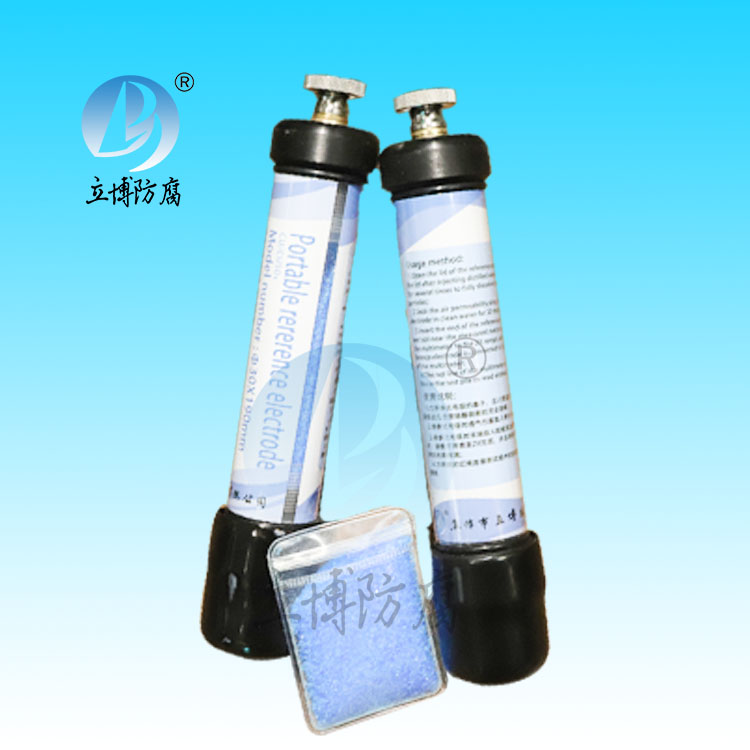 便攜式硫酸銅參比電極適于現(xiàn)場(chǎng)使用。主要用于測(cè)定地下金屬管道的自然電位及陰極保護(hù)電位,測(cè)定土壤中的雜散電流,也可用于測(cè)定電纜金屬護(hù)套及混凝土中鋼筋的電位。該電極在土質(zhì)較粘的地方,可作外加電流陰極保護(hù)體系中的控制電位用參比電極??稍诟黝愅寥兰暗袘?yīng)用。