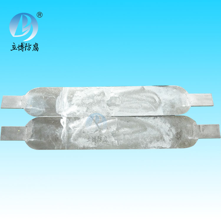 鋅陽極適用于海水、淡海水介質(zhì)中的船舶、壓載水艙、機(jī)械設(shè)備、海洋工程和海港設(shè)施、鉆井平臺、港口碼頭、海水介質(zhì)的冷凝器、水泵以及低電阻率土壤中的管道、電纜等設(shè)施金屬防腐蝕的陰極保護(hù)。