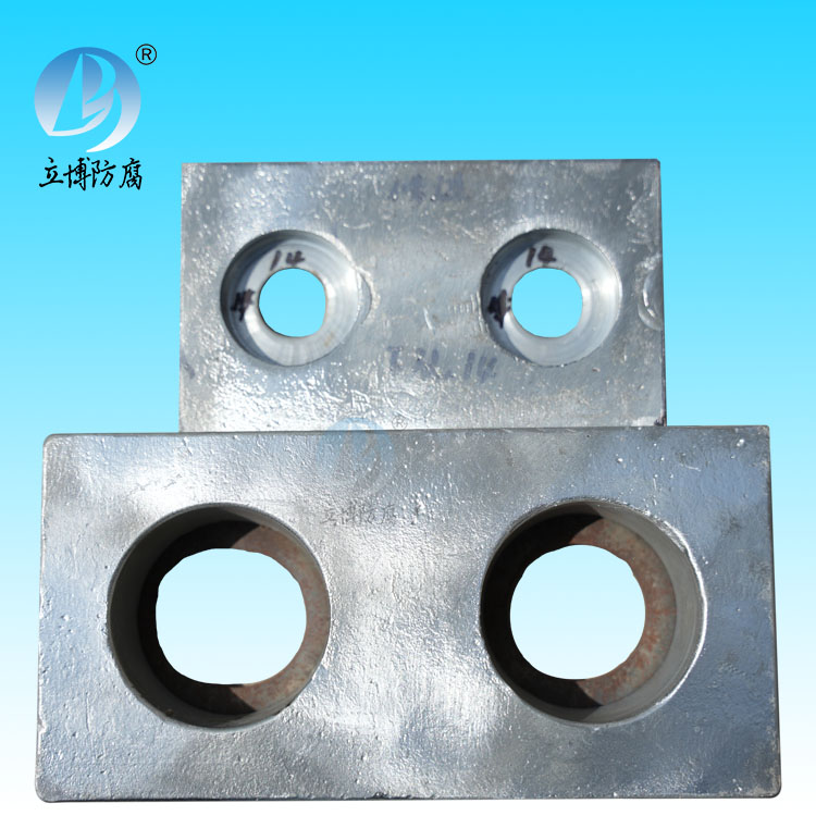 鋅合金陽(yáng)極適用于海水、淡海水介質(zhì)中的船舶、壓載水艙、機(jī)械設(shè)備、海洋工程和海港設(shè)施、鉆井平臺(tái)、港口碼頭、海水介質(zhì)的冷凝器、水泵以及低電阻率土壤中的管道、電纜等設(shè)施金屬防腐蝕的陰極保護(hù)。